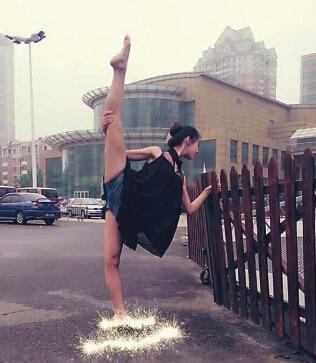 业余选手也不甘示弱,虽有些女生只“劈”到一半,但也会让身边的朋友拍照留念(如右边组图)。